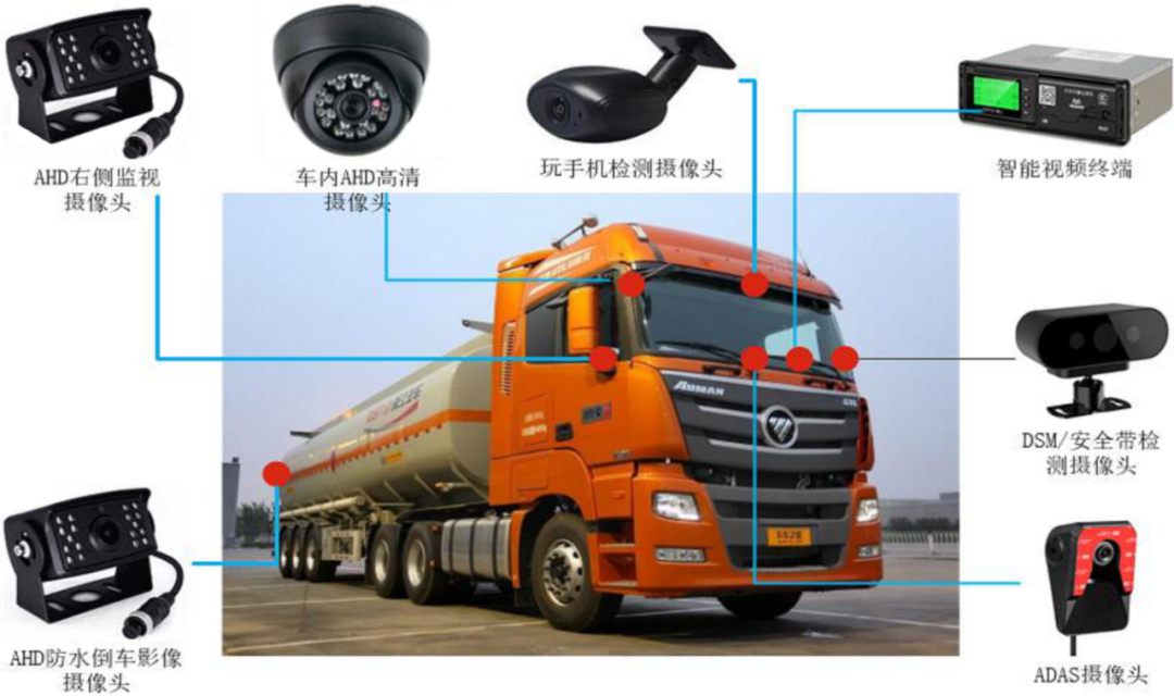 外设:主动安全智能视频摄像头ADAS、DSM、HOD、BSD、声光报警器、显示屏等