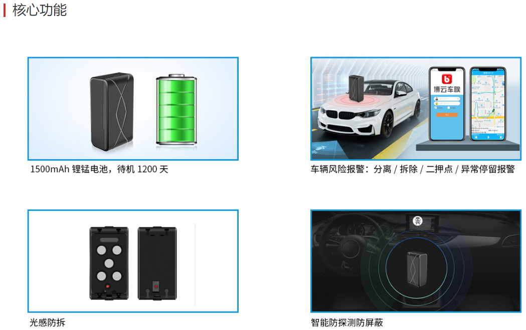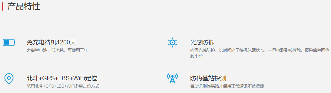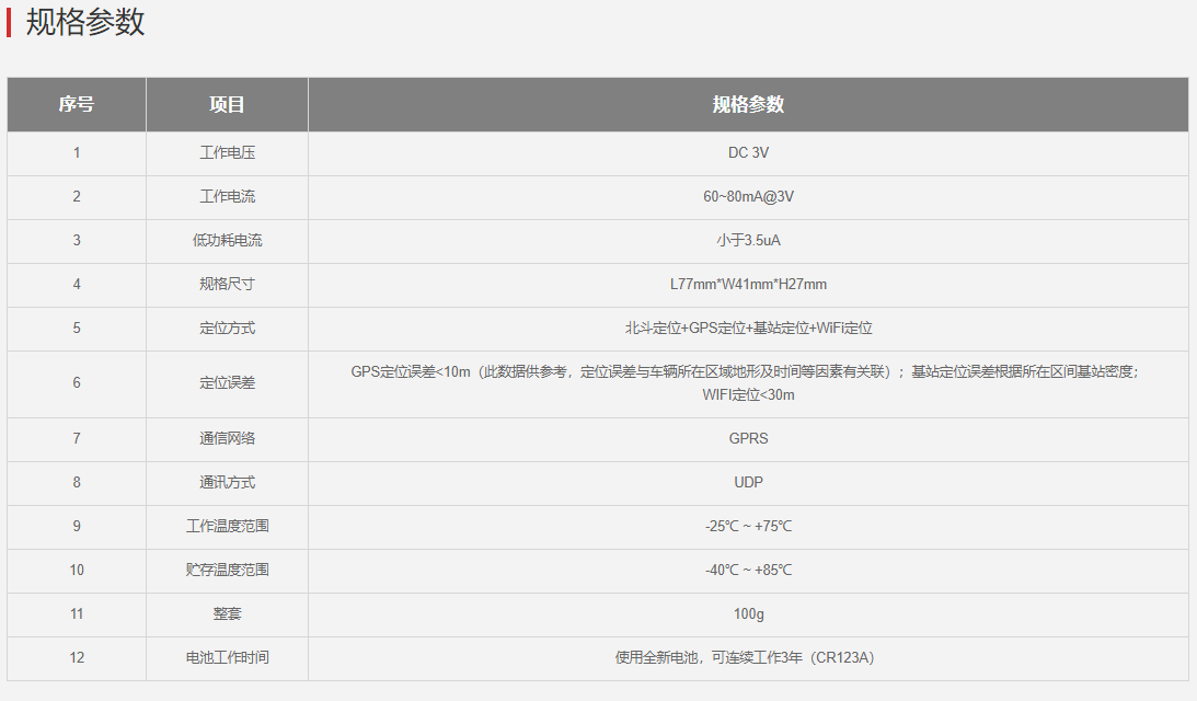 • 产品概述:BD/GPS/LBS/WiFi多种定位方式,大容量后备电池,可待机使用三年